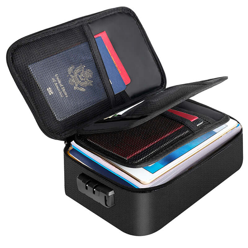 Small Fireproof Document Bag Black with Lock